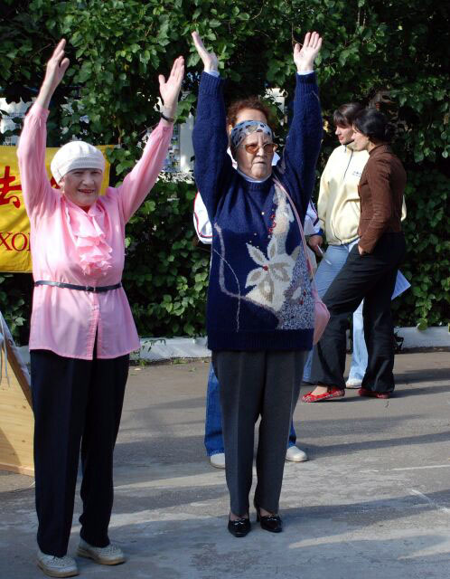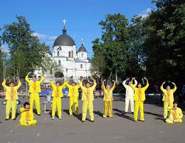 法轮功学员表演的节目吸引了很多莫斯科市民