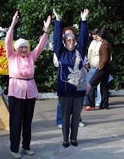 法轮功学员表演舞蹈,展现修炼者的风貌