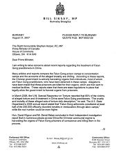 加拿大大温哥华地区本拿比市道格拉斯选区国会议员Bill Siksayi日前致信加拿大总理哈珀,提请他关注法轮功学员在中国的遭遇。