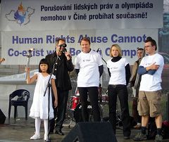 同时出席人权圣火活动的还有众多捷克籍的奥运会奖牌选手和多位影视界名人,十几个乐队在现场用音乐表达了他们对中国人权的支持,从中午十二点开始的音乐会吸引了广场上的捷克当地人和来自世界各地的游客。