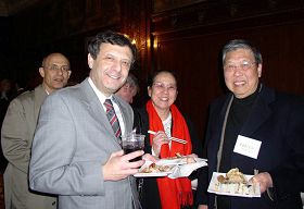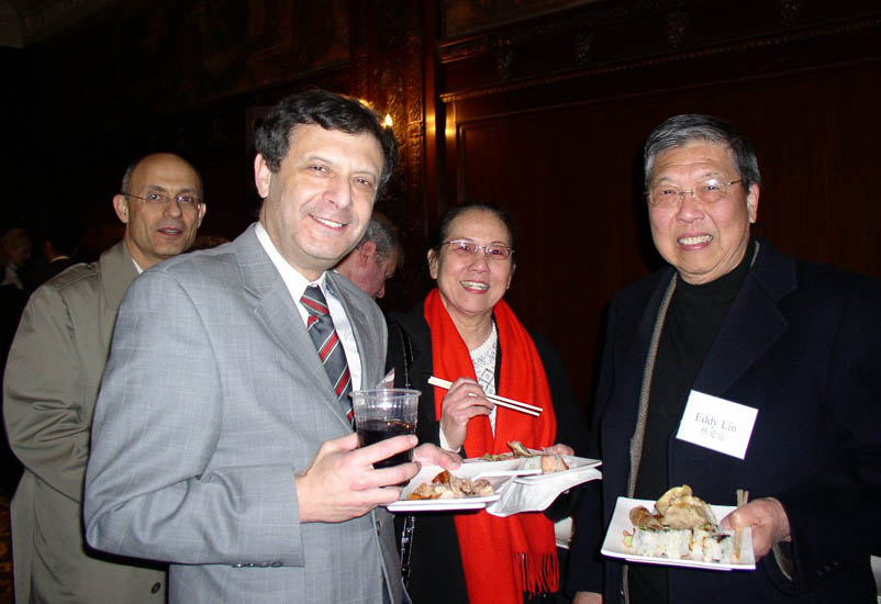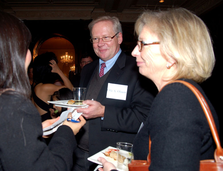 ![]() 麻州众议员Theodore C. Speliotis(中)和夫人(左)及他们的朋友瑞典驻新英格兰地区副总领事Ginga Sewerin-Olsson(右)。 |