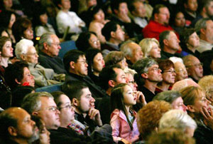 ![]() 入神观看新唐人晚会的科罗拉多州观众 |