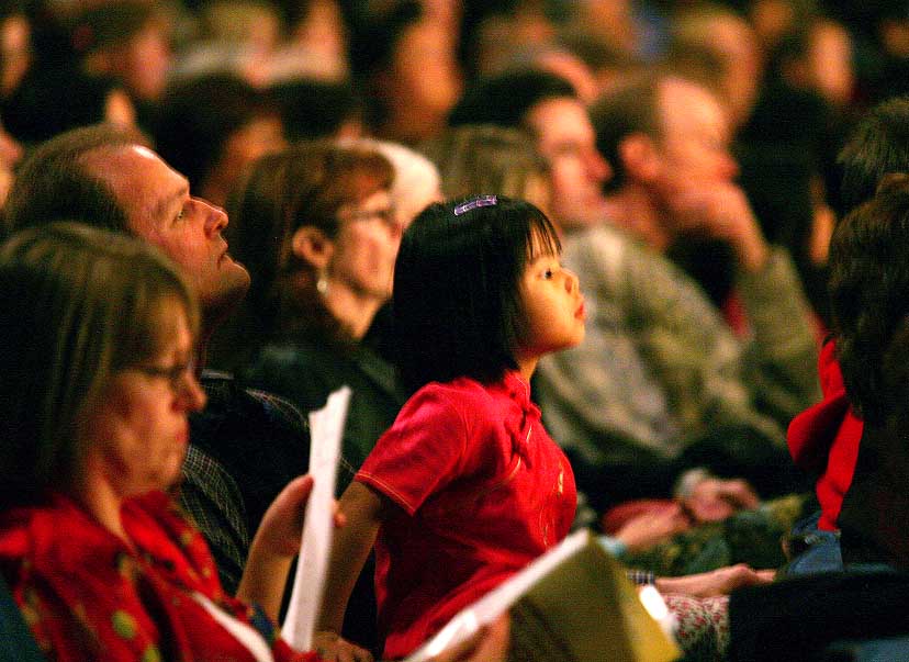![]() 丹佛市的小朋友为剧情所吸引,伸长了脖子观看演出。 |