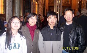 波士顿华人厨师阿强一家四口是新唐人电视的忠实观众,听说全球华人新年晚会在波士顿演出,阿强毫不犹豫的请朋友提前一个月帮忙购买了高价位的晚会票,并急切的等待晚会演出那一天的到来。一月十二日阿强一家早早的来到了剧场,特意找到给他介绍晚会的朋友,带来了一份小礼物以表示感谢之情,并合影留念。记者因此有机会给他全家留下一份合影。演出结束后,记者又有机会碰到阿强,但因为记者正在采访其他受访者,而他又要赶回去上夜班,因而失去了一次与阿强交谈的机会。但从阿强脸上流露出的激动神情可以看出,神韵演出给阿强一家留下了美好的记忆。