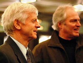 ![]() 前加拿大亚太司司长大卫•乔高与友人Frank Scheme一起来观看了演出 |