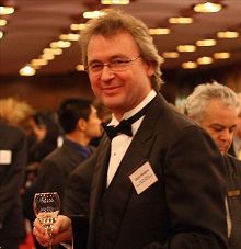 ![]() 加拿大著名的钢琴家、渥太华室内音乐协会执行总监格兰•霍丁(Glenn Hodgins)在1月13日新唐人全球华人新年晚会的贵宾招待会上。 |