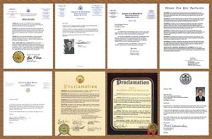 发来褒奖和贺信的官员包括联邦众议员鲍伯•费尔纳(Bob Filner)、德雷尔•艾萨(Darrell Issa)、苏珊•戴维斯(Suzan Davis),加州议会众议员丹尼斯•莫芮奴•达启尼(Denise Moreno Duchheny)、周尔•安德森(Joel Anderson),维斯塔市市长莫瑞斯•万斯(Morris Vance)及市议会全体议员,卡尔斯堡市市长克劳德•路易斯(Claude A. Lewis)、圣地亚哥市议员布莱恩•孟山(Brian Maienschein)等。