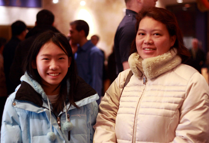 从北京来加拿大八年的Mary•黄带着女儿Milly来看演出。