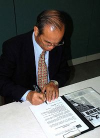 ![]() 加州众议员曼多沙的资深代表拉利·卡波拉罗曼到场为新唐人电视台颁发褒奖。 |