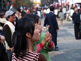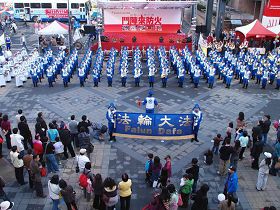 当天国乐团演奏时,喧闹的信义商圈顿时冻结,舞台旁、天桥上行人屏气凝神、驻足聆听,简短演出让人意犹未尽。「法轮大法好」、「法鼓法号震十方」、「送宝」三首曲目把大法的美好和「真善忍」的福音传递给民众。现场主持人赞赏,这真是简洁、迅速、有力及训练严谨的团体。