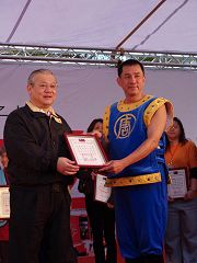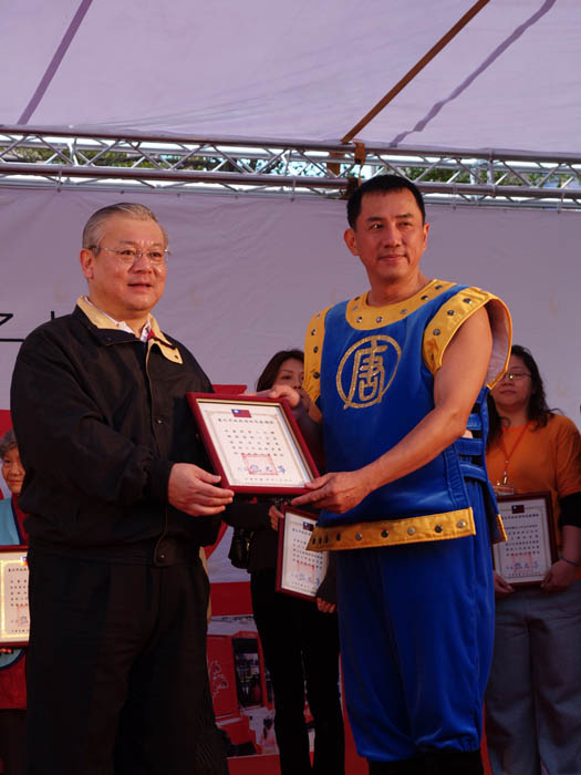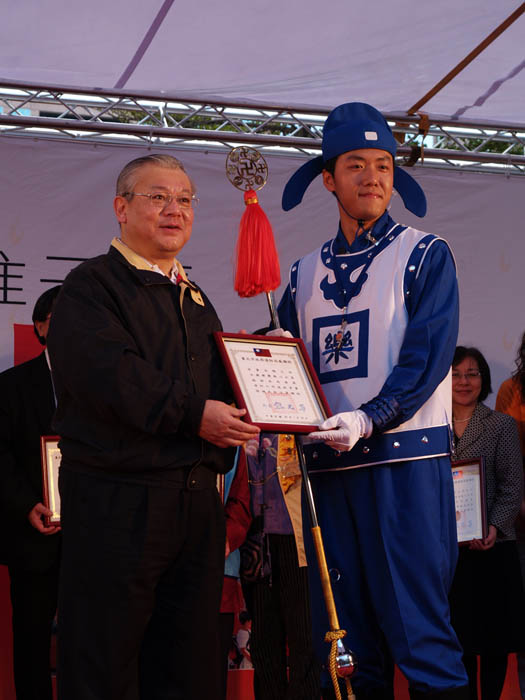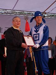 ![]() 新唐人旗鼓队获台北市消防局局长熊光华颁发感谢状 |
