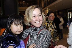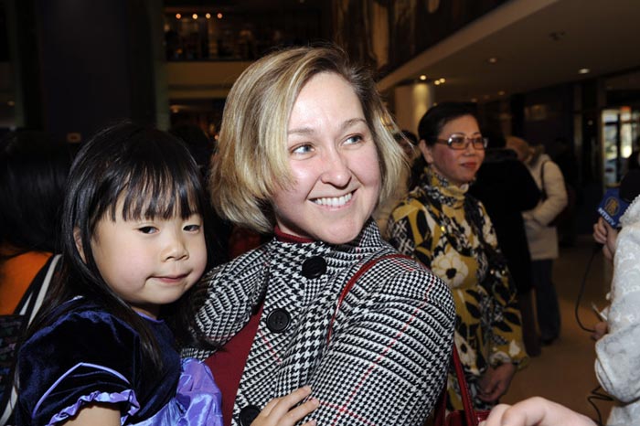 ![]() Chris Arthur 带着从广西领养回来的女儿Adeline一起看晚会。她们表示明年还会来看 |