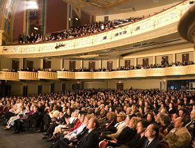 二零零八年在多伦多上演的新唐人新年晚会,每每散场后,索尼中心剧场大厅里的观众依然神采飞扬、热情不减。