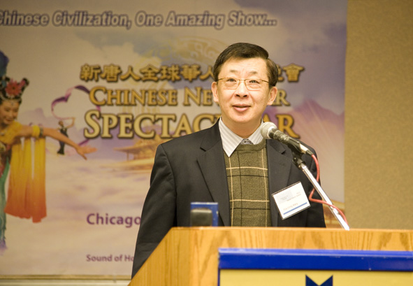 【明慧网二零零八年一月二十七日】(明慧记者徐菁报道)二零零八年一月二十六日,台湾驻芝加哥台北经济文化办事处副处长王保新先生是第二次来观看晚会,在芝加哥华人新年晚会VIP招待会上,他表示新年晚会对中华传统文化的呈现,水准非常高,可以看出艺术家们非常用心。他觉得神韵巡回艺术团通过演出对传统文化的保存和弘扬,比中国都做得好,也比台湾做得好。