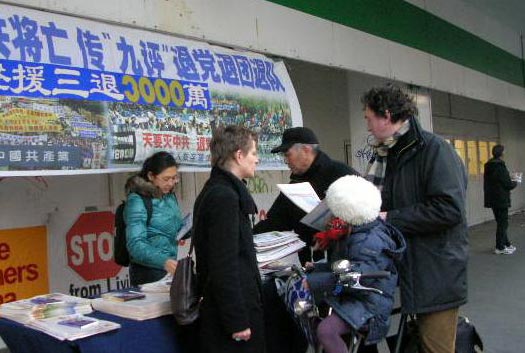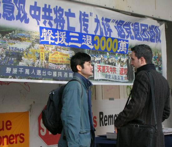 路人驻足了解真相和发生在中国的退党大潮信息