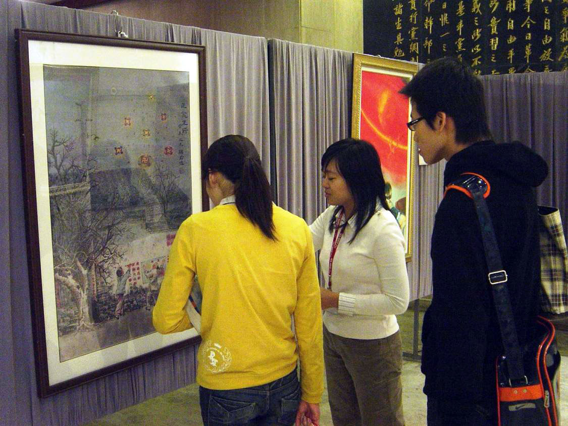 【明慧网二零零八年一月二十八日】睽违了两年多之后,台湾政治大学再度由法轮功研究社于二零零七年十二月十七至二十一日,在中正图书馆举办“真善忍国际美术展”,希望将法轮大法的美好带给政大师生与台北市文山新店区的民众,许多有缘人更因此喜得大法。