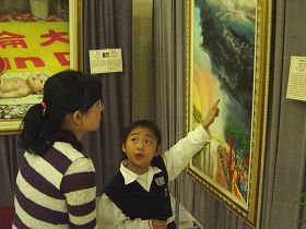 在为期五天的展期中,图书馆络绎不绝的师生一进门就看到大厅里的美展,许多人自然的在学员们导览下观赏画作;还有社区民众扶老携幼的来观赏,许多人因此更深刻的了解了法轮功的内涵及发生在大陆的迫害真相,进而主动表示想学炼法轮功。
