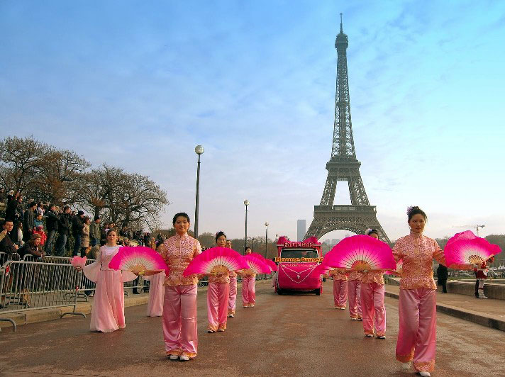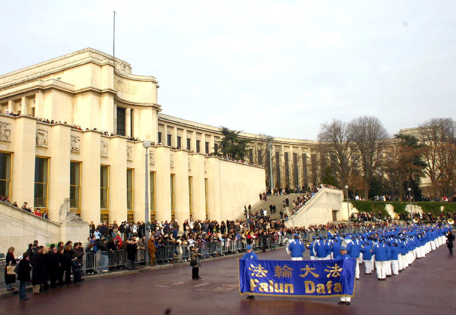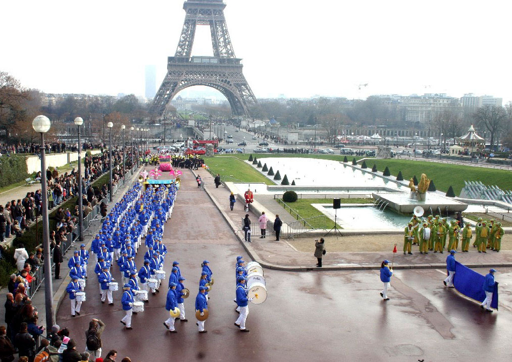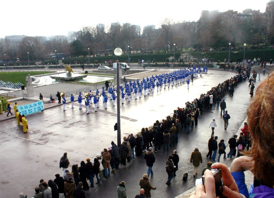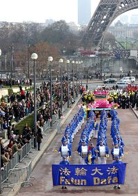 ![]() 以法轮功欧洲天国乐团打头阵的“巴黎游行节”吸引无数观众 |