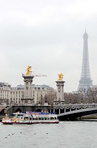 ![]() 欧洲天国乐团乘坐的游船通过富丽堂皇的亚历山大三世桥 |