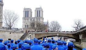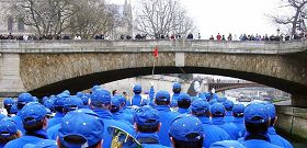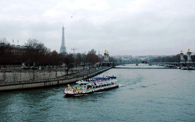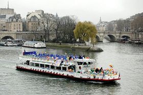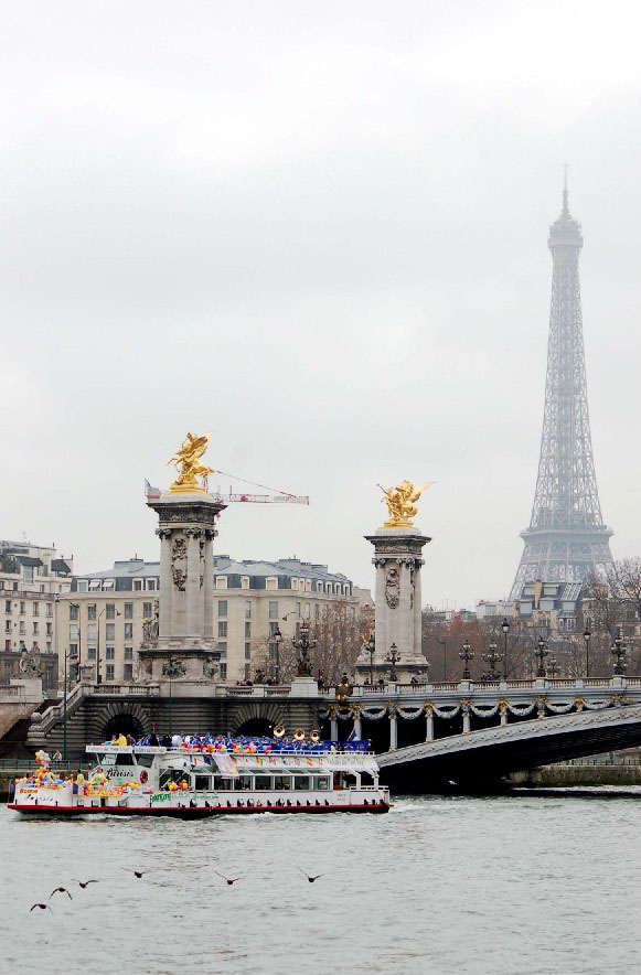 ![]() 欧洲天国乐团乘坐的游船从巴黎新桥码头启航 |