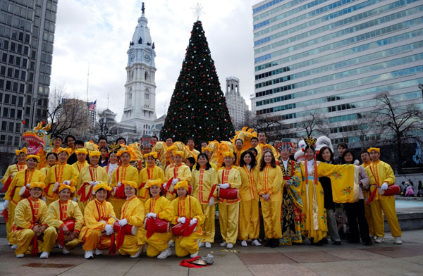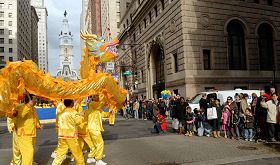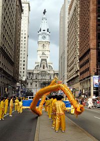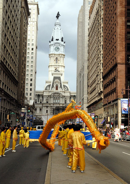 ![]() 金龙飞舞在费城市政大楼前百老汇大道上 |