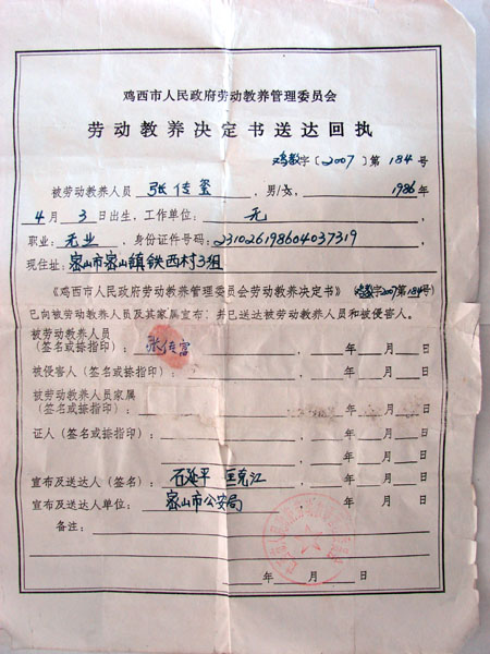 黑龙江密山市张传富、薛颜荣被非法劳教的内幕
