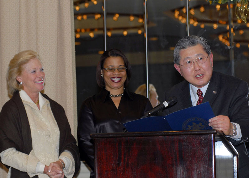 ![]() 宾州州长夫人、费城艺术大道(Avenue of the Arts, Inc.)发起人和现任主席玛舟 •阮岛(Marjorie O. Rendell)(左)、艺术大道执行主任凯伦•路易斯(Karen A.Lewis)、宾州州长顾问委员会亚裔事务执行主任高海超(Harry Kao)。 |
