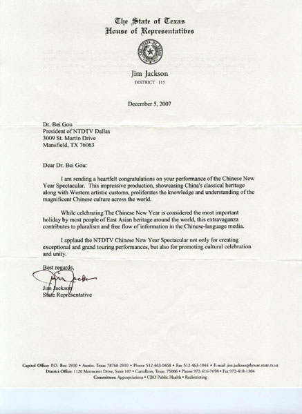 她说,在神韵的演出里看到了真正的文化。她要写信给亚特兰大搞艺术的部门,还要写给亚特兰大日报(Atlanta- Journalist Constitution),以后不要总是报摇滚乐,要大力报导这个这么好的演出;“我一定要把这些告诉她们”。