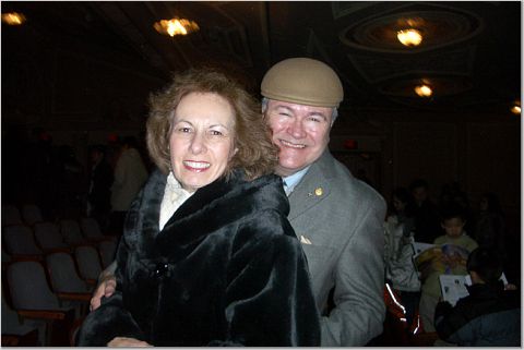 ![]() 费城华纳街剧院设备经理布鲁斯·麦尔(Bruce Myers)说这个演出非常优秀:“舞蹈棒极了,这个演出真是个奇观。”图为麦尔先生及夫人。 |