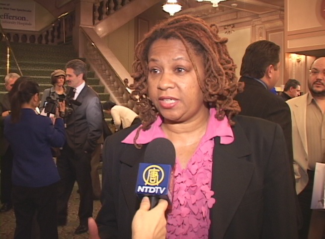 宾州州长夫人玛舟瑞•任德尔表示:“太棒了!新唐人新年晚会能在美国出生地、第一城、费城开演,我感到很骄傲。”