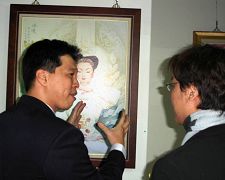 一位中华艺术学校毕业专攻油画的林小姐,凭自己的专业训练,很仔细的读著每一幅作品,她说有人看画,单纯看画面构图、色彩、线条等技巧的表现;有人会看到整幅画的内容、意境。在这些作品前面,她忍不住还想去琢磨画家作画时的思绪与心情。法轮功遭受的酷刑迫害让她联想到纳粹集中营,象《纽伦堡大审判》这类有关希特勒暴行、刻画人性的小说电影,她都看过,她自然也会继续关注法轮功的未来。