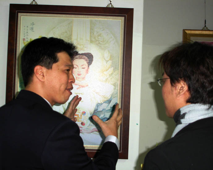 三日中午,阳光普照,连日寒流带来的阴冷一扫而空,整个慈恩艺文中心展场被画作与鲜花装点的充满一片祥和,屏东唐鼓队以撼动人心的阵阵鼓乐迎来众多嘉宾,包括立法委员黄昭顺、市议员蓝健菖、丽尊酒店副总经理李根同、艺文中心主任谢智良以及高雄市美术推广协会和爱乐协会等多位理事长均应邀出席了开幕式。