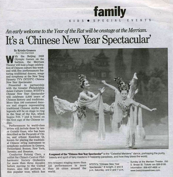 费城华裔会计师詹尼特带着女儿和九十岁高龄的母亲在美丽安剧院观看了一月五日下午的全球华人新年晚会。詹尼特说,最让我感动的节目是展现法轮功学员的舞剧,看着三个女孩子因为修炼法轮功而遭受共产党迫害,令人情不自禁的落泪,我女儿坐在我的旁边,她一直在不停的擦眼泪。”