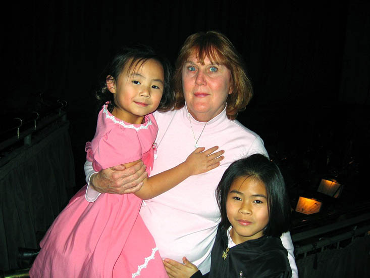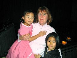 ![]() 布兰德(Rhonda Ballard)带着她俩个领养的中国女儿看秀。她说:“这场晚会对我和 我的家人,都是一次很好的文化体验;特别是对我的女儿们,因为这就是他们自己本 土的文化。” |