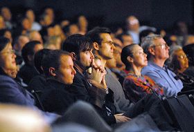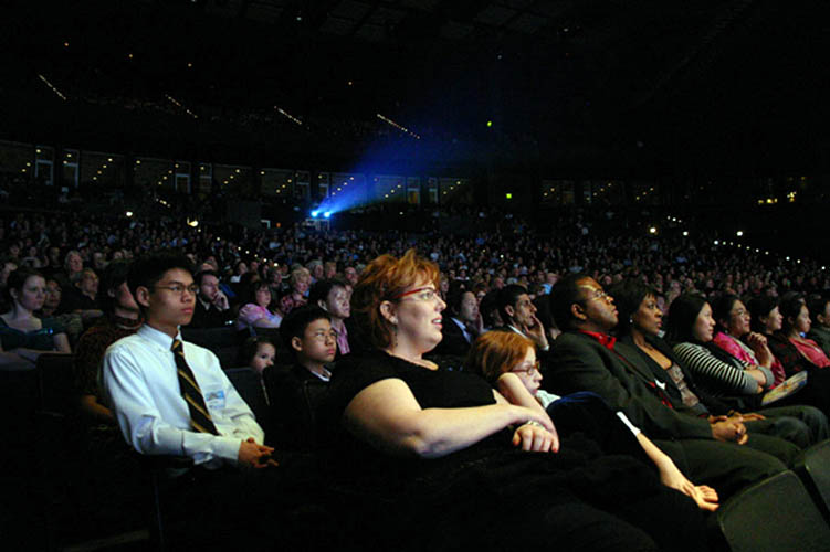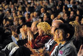 全球华人新年晚会达拉斯诺基亚剧院(Nokia Theatre)现场观众聚精会神观看演出。