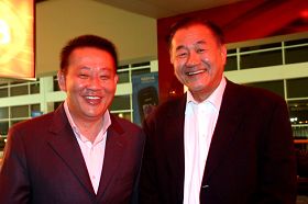 蔡先生(Joe Tsai)(右)去年曾看过新唐人新年晚会,觉得非常好,这次约他公司的总经理Mike 吴(左)一道来观看,蔡先生说:“下次我将为神韵新年晚会做广告,我和太太非常喜欢新年晚会。”