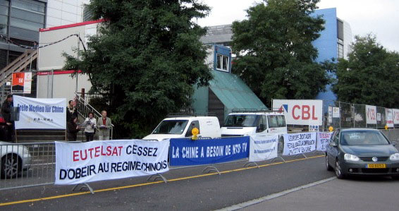 【明慧网二零零八年十月十一日】二零零八年十月九日,欧洲二十七国部长会议在卢森堡的国会中心举行。新唐人电视台欧洲分部在国会中心门前就欧卫在中共施压下中断新唐人向中国大陆播出信号一事举行了呼吁活动。部份法轮功学员参加了活动,呼吁各界关注欧卫事件,让中国大陆的民众能早日恢复收看到新唐人的节目,了解真相。