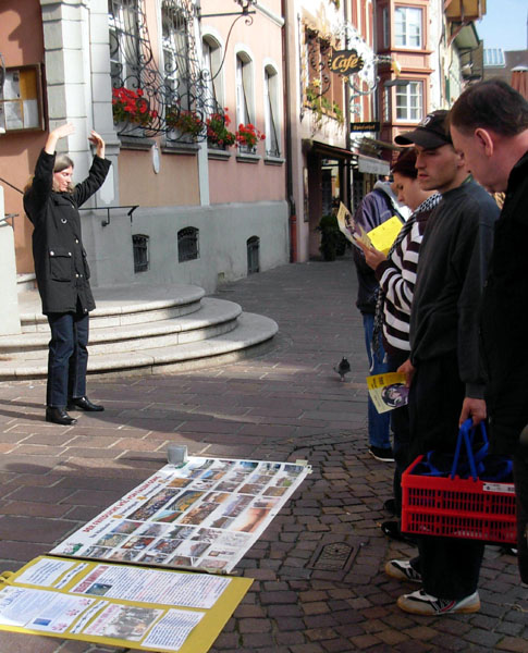因为Waldshut位于瑞士和德国边境,所以路人中很多来自瑞士。Doris女士就是其中之一,她表示自己签名支持法轮功学员:“我希望这能对中国有所影响,能够起一些作用,改变一些事情。”对于法轮功,以及中共活摘法轮功学员器官牟取暴利的事情,她都是第一次听说,她认为中共活摘器官的罪行非常糟糕,让她很震惊。她希望中国人能够“对现有的政府系统做一个考量,应该有人性。”