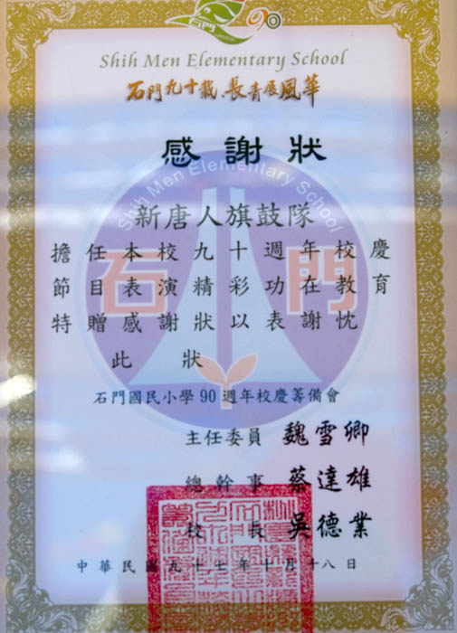 整个庆典在总统感性忆童年的致词、致赠母校礼物、和当年同窗合影中达到高潮。此外,另有陆军司令部乐仪队的表演、武术表演及新唐人旗鼓队表演、法轮功功法演示等,让校园充满朝气与欢乐的气息。