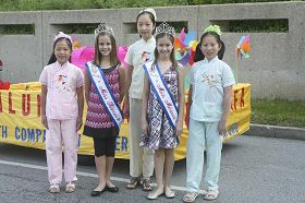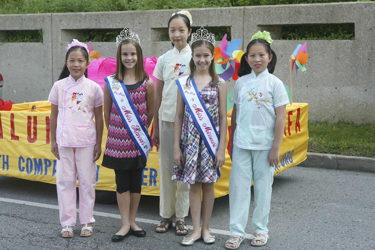 ![]() 两位密苏里小姐与大法小弟子在花车前留影 |