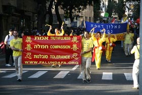 以色列法轮大法弟子参加耶路撒冷大游行(图)