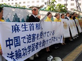 ![]() NPO法人日本法轮大法学会鹤园雅章代表呼吁日本首相麻生帮助制止中共迫害。 |