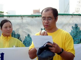 NPO法人日本法轮大法学会鹤园雅章代表在发言中指出,中国正在发生各种严重的人权迫害问题。在这些人权迫害中,对法轮功修炼团体的迫害最为厉害和残酷,希望首相麻生此次中国行,能把法轮功学员要求停止迫害的呼声带到中国。