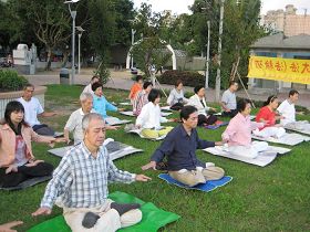 【明慧网二零零八年十月二十七日】(明慧记者郑语焉台湾台北县采访报导)都市早晨的公园总是热热闹闹,有的来跑步、快走、打球或利用园区休闲设施运动健身,也有的扶老携幼前来散步呼吸清晨新鲜空气和享受天伦之乐。台北县永和市仁爱公园,位于永贞路与仁爱路口的进门右侧草坪上,总是有那么一群人,每天黎明时分就在这里炼功,全年三百六十五天从不间断,他们是法轮大法(法轮功)的修炼者。这在台湾,只是上千个炼功点的其中之一,究竟什么原因,能让这群人有着如此坚定的毅力乐此不疲呢?