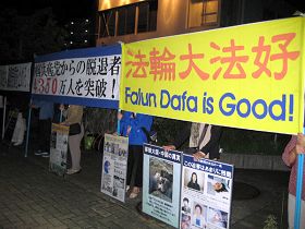 福冈法轮功学员中领馆前要求停止迫害(图)