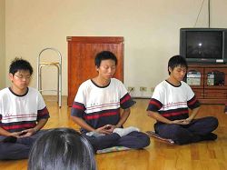 ![]() 劲炫(中)利用午休时间和同学一起炼功 |