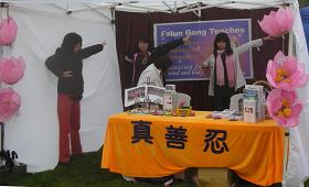 二零零八年十月四日和五日,法轮功学员参加了美国华盛顿州Issaquah市一年一度的三文鱼节日庆祝活动,向人们介绍什么是法轮功和当前正在中国发生的迫害真相。