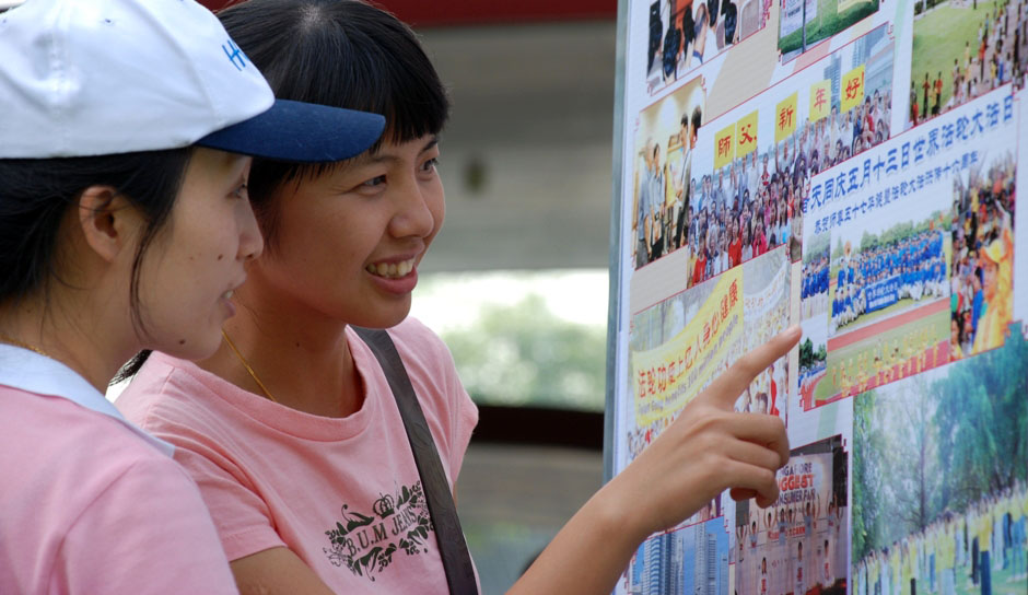 潘先生是银行职员,以前他在报章和电视上看到过有关法轮功的报道,留下不好的印象。“今天路过这里才知道,法轮功是好的。”他说,“整天跟电脑打交道,很累,正想找个好的健身方法。”当他拿到“法轮功九天学习班”的广告时,高兴的表示,愿意去试试。