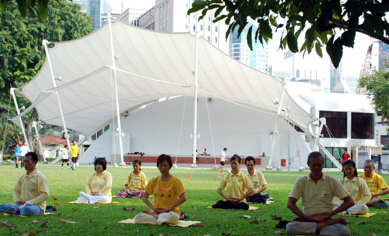 在狮城芳林公园传播法轮功真相(图)