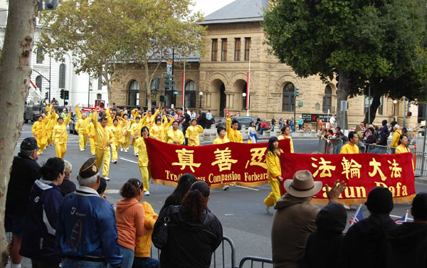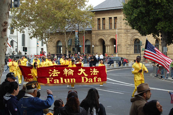法轮功学员参加圣荷西老兵节游行受欢迎(图)